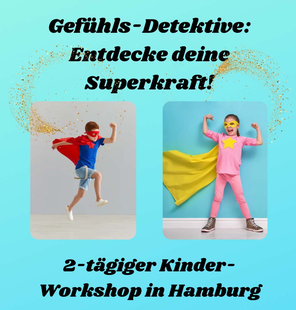 Gefühle sind wie geheime Botschaften – manchmal fröhlich und leicht, manchmal schwer und verwirrend. Im Workshop „Gefühls‑Detektive“ machen wir uns gemeinsam auf eine spannende Reise: Wir tauchen ein in die Welt der Emotionen und lernen, sie zu verstehen, zu benennen und liebevoll mit ihnen umzugehen. Denn wer seine Gefühle kennt, sie annehmen und ausdrücken kann, hat eine wahre Superkraft in sich entdeckt!